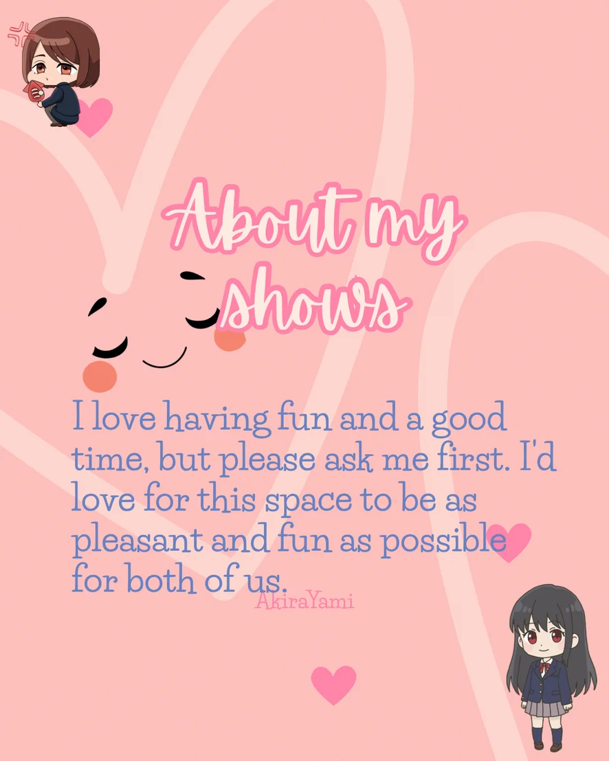 도기 스타일, 아헤가오, 카멜토우, 플래싱, 에로틱 댄스, 핑거링, 스트립쇼, 자위, 상의탈의, 트월킹, 자지 평점, 컴샷, 음란한 대화, 풋 페티시, 딥스로트, 굴욕, 자위행위 지침, 섹스 기구, 블로우잡, 나일론, 풋잡